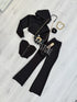 Conjunto de 3 peças composto por corset, sweat curta e calça.