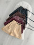 Calção de napa cardado com cinto incluído.
