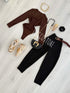 Calças em camurça com cinto incluído.