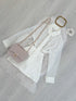 Conjunto de camisa transparente e gravata com saia calção.