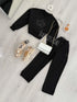 Conjunto de camisola e calça cardados com pelinho por dentro.