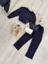 Conjunto de camisola e calça cardados com pelinho por dentro.