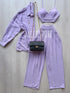 Conjunto de 3 peças constituído por top, camisa e calça.