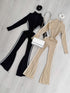 Calça boca de sino.