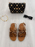 Papetes com detalhes em dourados e ajustável na parte de trás.